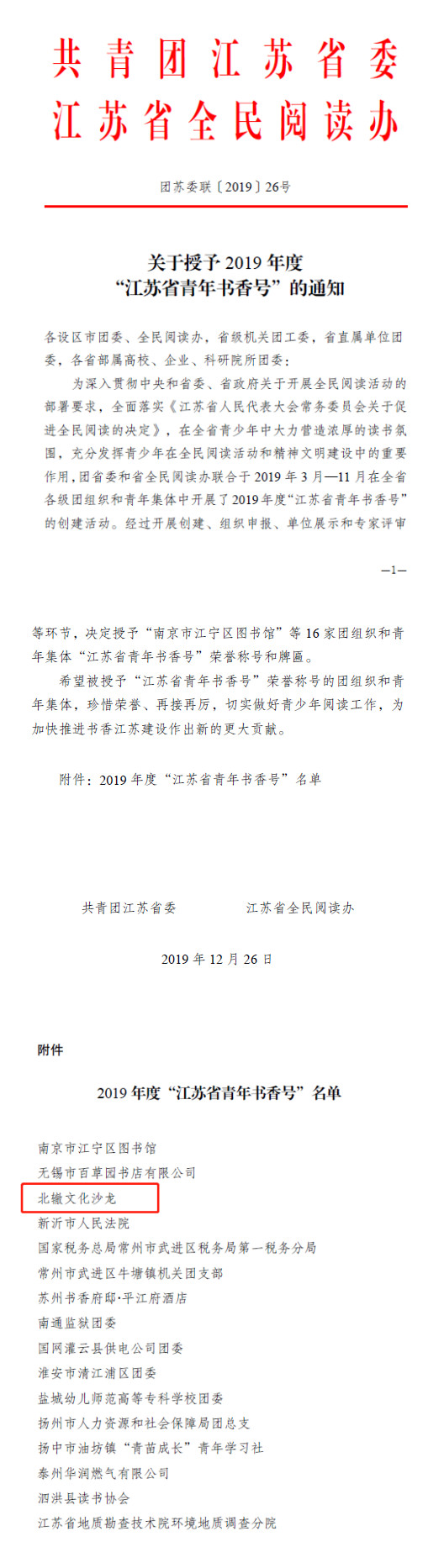 Team won the “Literary Youth of Jiangsu” in 2019.