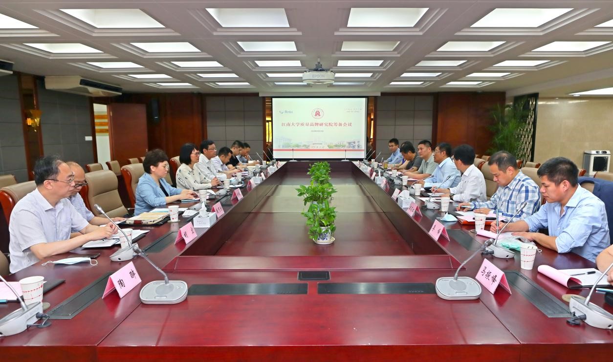 On May 15, 2020, the preparatory meeting for the cooperation project “Quality and Brand Research” between Wuxi Municipal People’s Government and Jiangnan University was successfully held at JNU. Gao Yaguang, Deputy Mayor of Wuxi, Zhou Haoming, Deputy Secretary-General of Wuxi Municipal People’s Government, Xu Weiying, director of Wuxi Bureau of Market Supervision, Hu Hong, deputy director of Wuxi Bureau of Market Supervision, Zhao Jianping, deputy director of Wuxi Bureau of Science and Technology, Dai Kewei, deputy director of Wuxi Municipal Bureau of Industry and Information Technology, Chen Wei, president of JNU, and experts from the Key Research Base of Brand Strategy and Management Innovation attended the meeting presided over by Teng Lefa, dean of the School of Business.