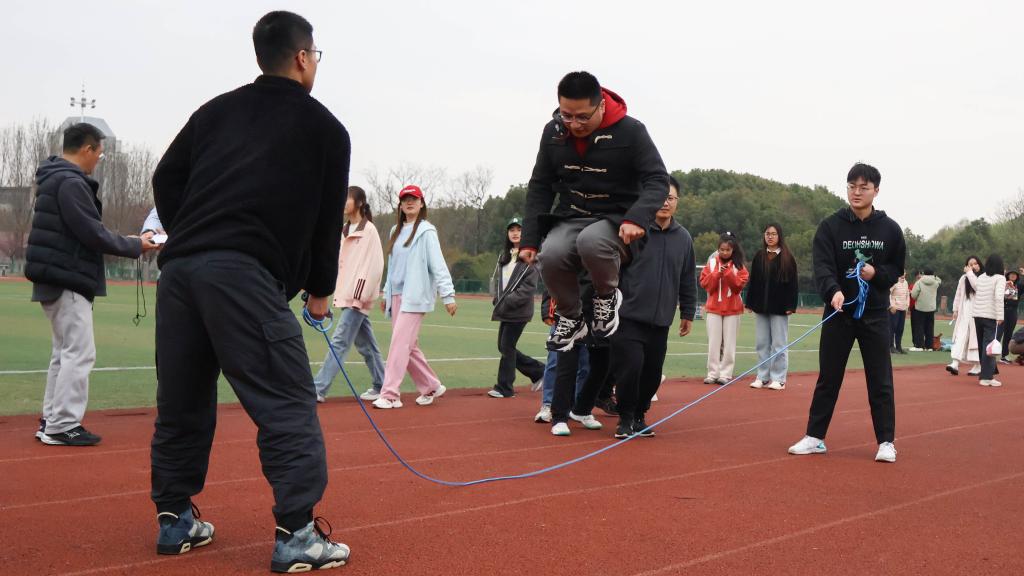 On the afternoon of March 27th, amidst the spring drizzle and colorful cherry blossoms, the staff fun sports meeting of the School of Business at Jiangnan University was held at the northwest playground. Themed "Strive for Brilliance, Unite for the Future," this event aimed to enhance cohesion and centripetal force among the faculty and staff through a series of lively sports activities, improve their physical fitness, and collectively contribute to the bright future of the School. More than 70 faculty and staff participated in this event, and special invitations were extended to professional coaches from the Department of Physical Education, Gu Shaoxiong, and Cheng Huaping, to provide on-site guidance and serve as referees.