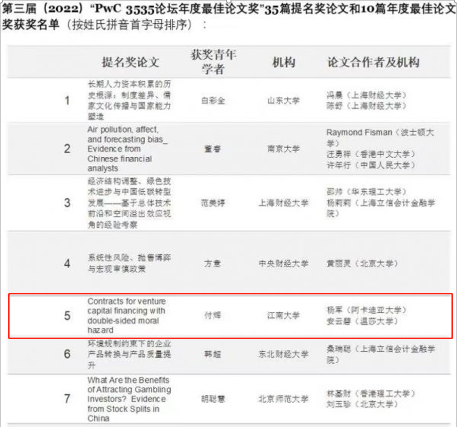 普华永道中国PwC 3535论坛2022年度最佳论文提名名单