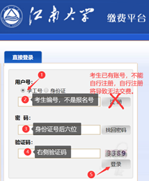 进入复试考生在学院规定的时间内登录“新葡萄8883国际官网缴费平台”交纳复试费用,复试收费标准:80元/生。缴费网址:http://pay.jiangnan.edu.cn/payment/。登录账号为准考证上的考生编号,登录密码为身份证后六位(友情提醒:考生账号已开通,切勿自行注册)。按照提示交费(使用网银),并打印或截图保存付费凭证。