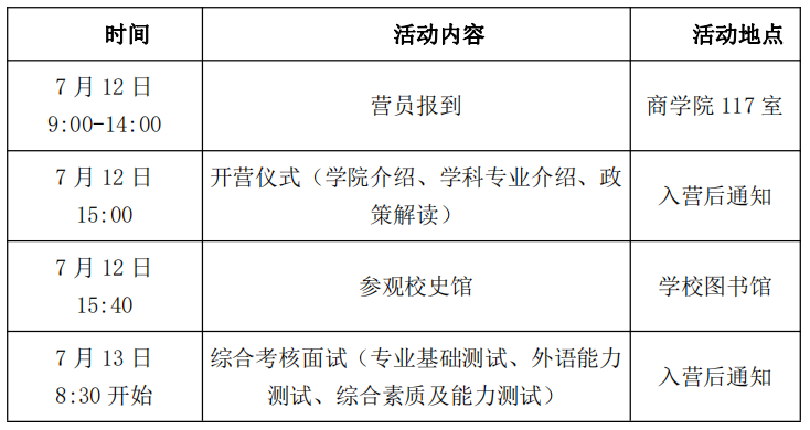 (三)学院将在6月30日前确定入营名单,通知获得入营资格的同学进入QQ群,未按要求时间入群的同学视为自动放弃。