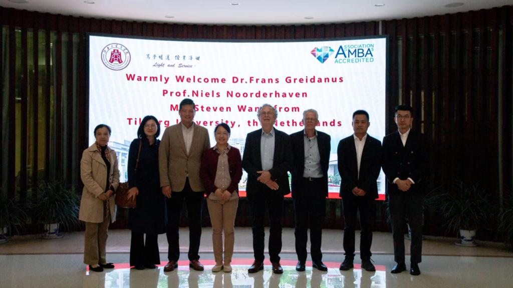 11月8日下午,荷兰蒂尔堡大学董事会顾问、浙江大学求是讲座教授Frans Greidanus博士、蒂尔堡大学经济管理学院副院长Niels Noorderhaven教授、荷兰北布拉邦省驻江苏代表王旭先生一行三人在无锡市外办欧非处一级科员龙鑫的陪同下访问新葡萄官网。新葡萄8883国际官网国际交流合作处副处长蔡建英、新葡萄8883国际官网院长浦徐进、国际教育学院院长龚晓斌以及国际交流合作处、新葡萄8883国际官网等有关人员与蒂尔堡大学代表团进行了会谈交流。