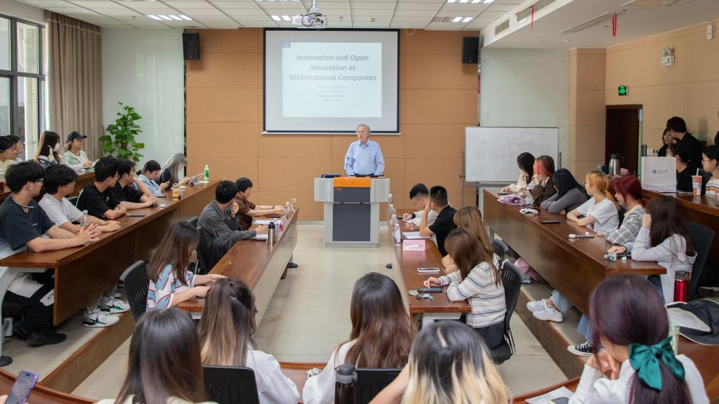 聘任仪式结束后,Greidanus博士为在场师生带来了一场题为“跨国公司的创新与开放式创新”的精彩讲座。他结合自身的经历和专业知识,深入分析了跨国公司在全球化背景下的创新模式和策略,为师生们提供了一次宝贵的学习机会。