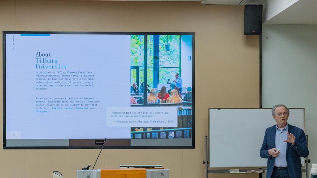 18日下午,学院举办荷兰留学分享会,邀请Greidanus教授与飞利浦监护中国区总经理龚坚博士作分享。Greidanus教授结合其蒂尔堡大学董事会顾问经验,为有意向赴荷深造的学子详细解析了院校申请流程,并就留学规划制定、跨文化适应策略等话题与现场学生展开深入交流。龚坚博士则从医疗科技行业发展角度,分享了外企职场实践经验与个人职业发展心得。活动尾声,新葡萄8883国际官网院长助理孟繁博介绍了新葡萄8883国际官网正在与蒂尔堡大学推进的交换和国际升学项目,旨在为学子搭建多元化国际教育平台。