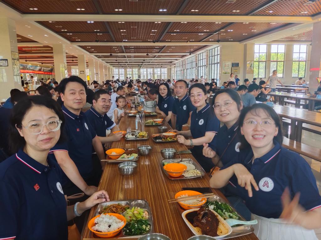 汪洁对会计2000级3班校友们的返校表示热烈欢迎,她带领校友们乘坐校园观光车游览校园,并详细介绍蠡湖校区的美丽风光及各个建筑的功能定位等情况。校友们驻足欣赏并拍照留念,对学校设施的与时俱进、日臻完善赞不绝口。游览结束后,校友们前往一食堂用餐,席间同学们笑语连连,那份久违的亲密与熟悉感油然而生。