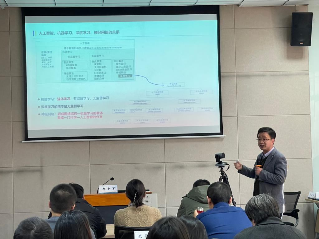 郑金军老师以《人工智能是“已来”的未来》为题向校友们作分享。他从人工智能的发展简史讲起,生动描绘了从“三驾马车”到“四大金刚”的演变历程,并展望了人工智能的未来发展趋势。他重点介绍了大模型技术的进步及其应用开发,强调了人工智能技术在企业实践中的广泛应用潜力。他鼓励校友们积极拥抱人工智能,将其视为提升竞争力的关键工具。
