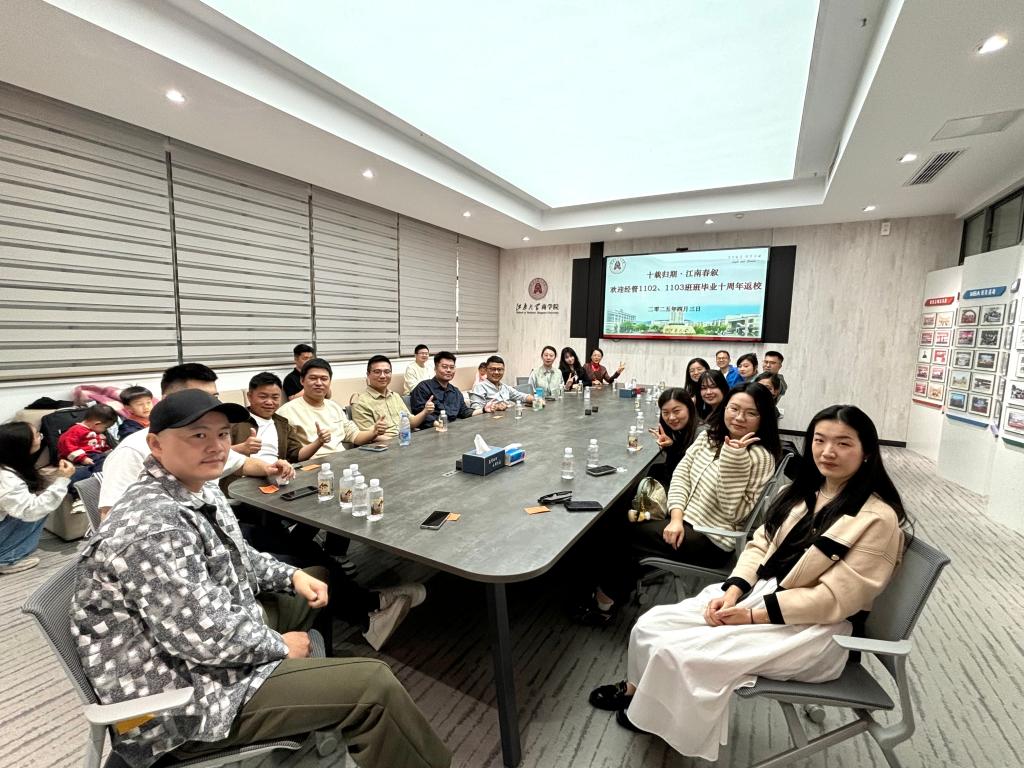 4月5日上午,新葡萄8883国际官网经管1102、1103班校友从五湖四海重返母校,共庆毕业十周年。新葡萄8883国际官网教师丁善耘、蒋天琪参加返校活动。