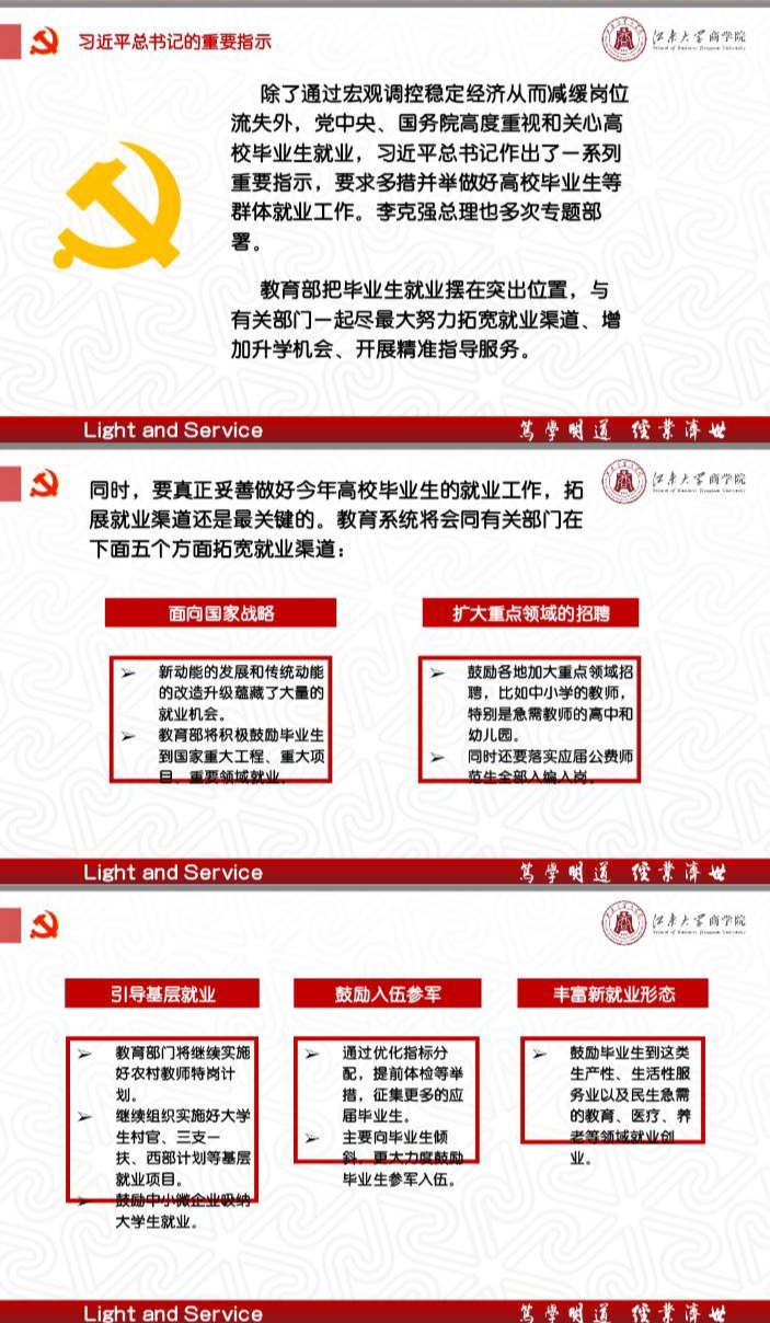 “当毕业季遇上疫情带来的史上最长寒假,准备步入职场的我们该何去何从?”商夏同志为同学们解读了教育系统会同有关部门拓宽就业渠道的重点举措:面向国家战略、扩大重点领域、引导基层就业鼓励入伍参军、丰富新就业形态。她以自身就业求职过程中的心路历程为例,帮助同学们正确认识疫情下严峻的就业形势,明晰优秀人才应把握社会转型契机,转变就业择业观念,查漏补缺完善自我;同时,应向疫情中冲锋在前的优秀党员群体看齐,在身体力行中锤炼党性修养,让青春之花绽放在党和人民最需要的地方。
