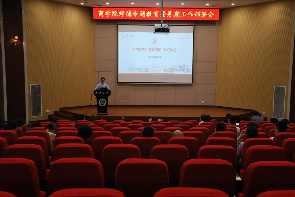 为贯彻学习习近平总书记关于教育的重要论述和全国教育大会精神,深入落实中共中央、国务院《关于全面深化新时代教师队伍建设改革的意见》精神,推进实施《关于加强和改进新时代师德师风建设的意见》《新葡萄8883国际官网师德专题教育方案》,7月14日下午,新葡萄8883国际官网在远东报告厅召开师德专题教育暨暑期工作部署会,会议由院党委书记徐锡清主持,新葡萄8883国际官网全体教职工参加会议。