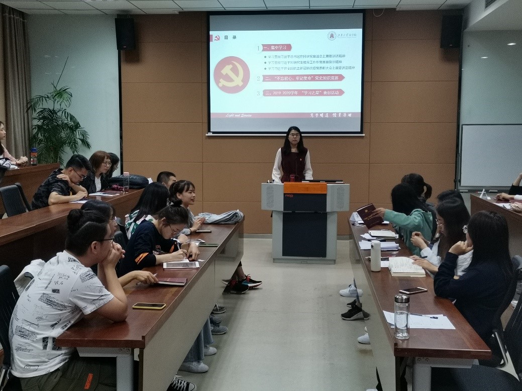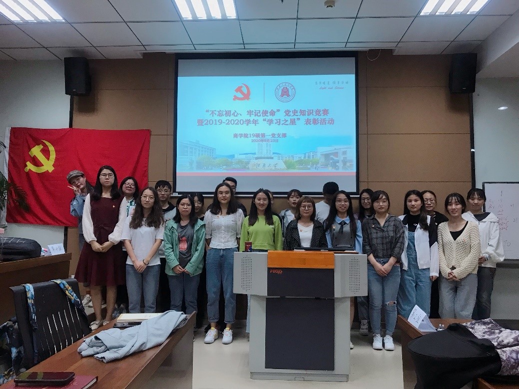 为巩固深化“不忘初心、牢记使命”主题教育成果落地见效,推动支部党员锤炼理想信念、坚守初心使命、敢于担当作为,新葡萄8883国际官网19硕第一党支部于2020年9月23日晚在新葡萄8883国际官网116东方厅开展“不忘初心、牢记使命”党史知识竞赛暨2019-2020学年“学习之星”表彰活动。党支部全体党员及入党积极分子参加,活动由党支部书记余莉攀主持。