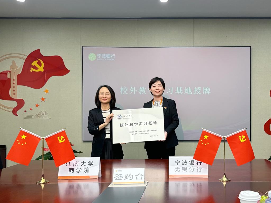 签约仪式结束后,孙小芳为宁波银行无锡分行授予新葡萄8883国际官网“校外教学实习基地”工作牌,为深化产学研深度合作、促进学生高质量就业强化力度保障。