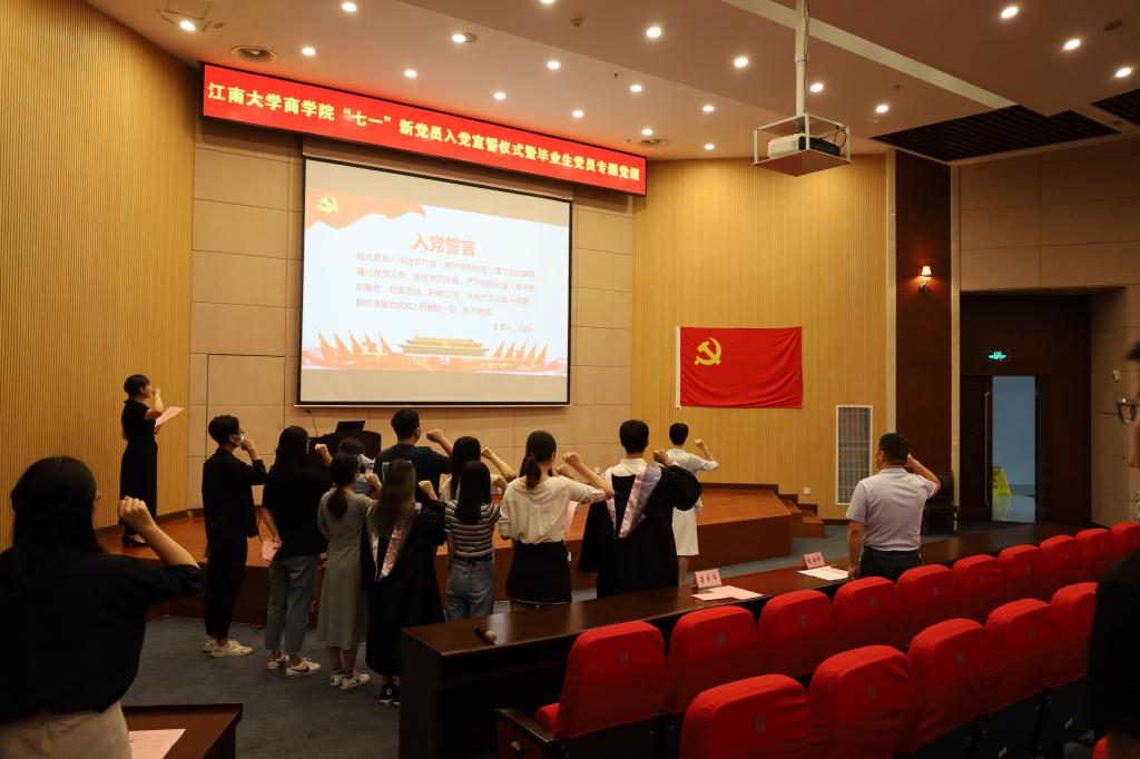 新葡萄8883国际官网党委通过举办“七一”入党宣誓仪式暨专题党课教育活动,对毕业生党员来说,既是一堂思政教育课,也是一堂廉政教育课,旨在加强学生党员群体的身份认同和党性修养,明确新时代大学生党员肩负的使命与担当,增强学生党员队伍的凝聚力和向心力,根植商院学子爱国爱校的情结种子,助力扣好人生第一粒扣子,期许在人生新征程中不忘初心、牢记使命,砥砺奋进、行稳致远。