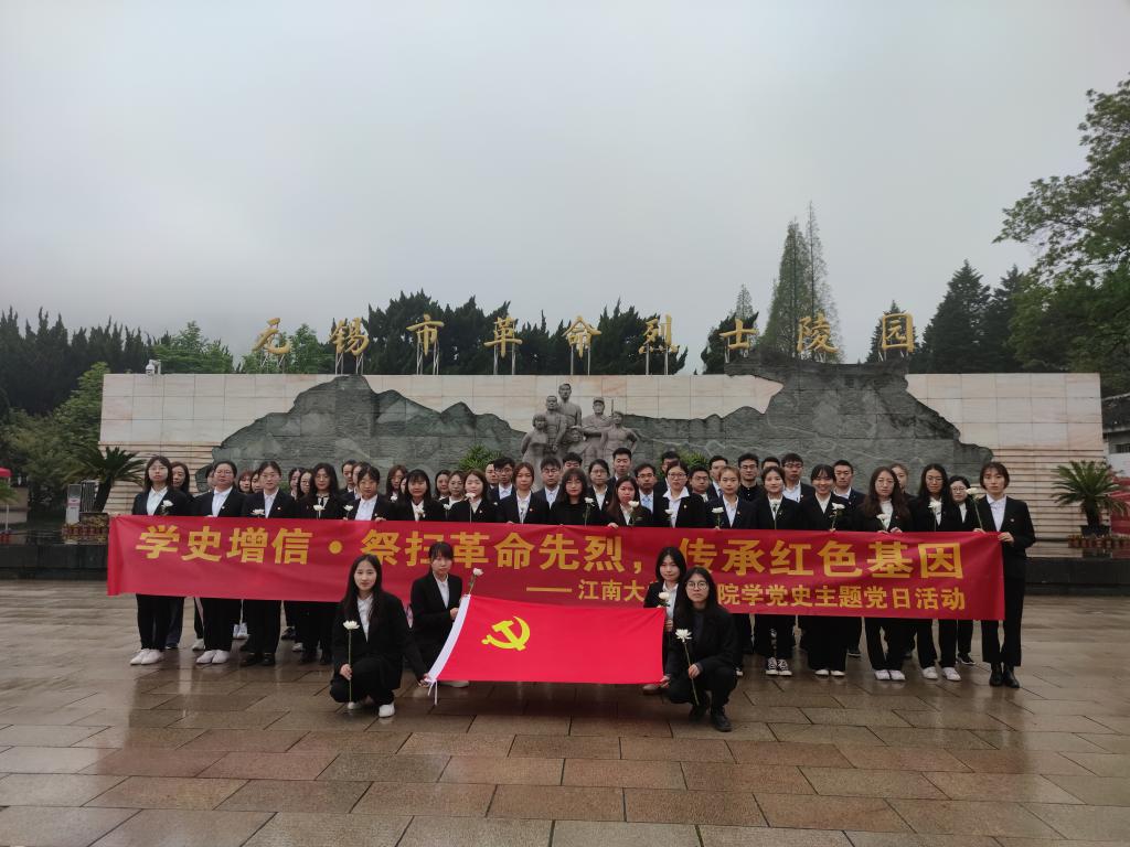 为认真学习领会习近平总书记在党史学习教育动员大会上的重要讲话精神,积极参加党史学习教育,切实落实“学史明理、学史增信、学史崇德、学史力行”总要求,4月1日上午,新葡萄8883国际官网19硕第一、第二党支部、新葡萄8883国际官网本科生党支部党员、入党积极分子代表和专职组织员、辅导员等一行50人前往无锡市革命烈士陵园开展“学史增信•祭扫革命先烈,传承红色精神——学党史主题党日活动”。新葡萄8883国际官网19硕第一党支部书记余莉攀主持本次活动。