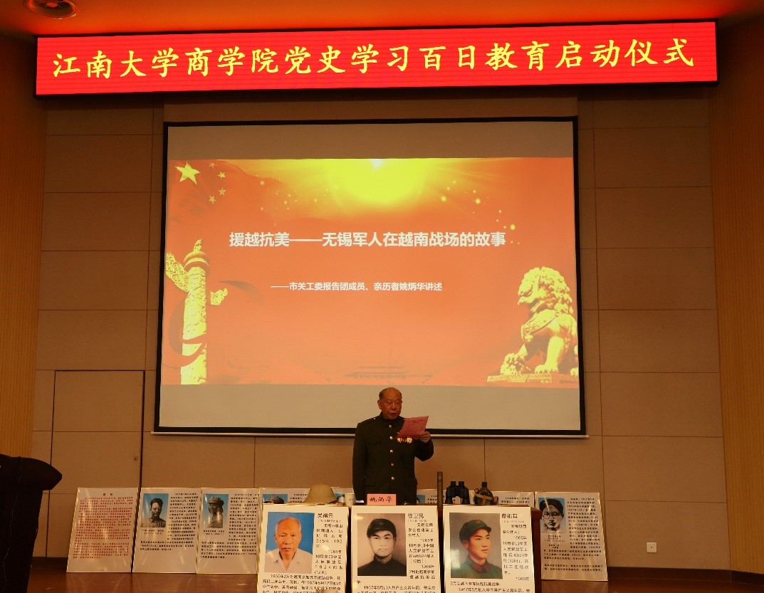 3月24日下午,新葡萄8883国际官网在远东报告厅举行了“历百年峥嵘岁月,行百日求索道路”百日教育启动仪式,正式开启党史教育百日学习系列活动。活动邀请中国“两弹一星”研究会(无锡)、无锡市关工委报告团成员姚炳华、杨耀奎、周泉根、杨永康、夏山南等5位抗美援越老军人作为嘉宾,新葡萄8883国际官网党委书记张海峰、专职组织员强心宇参加活动。