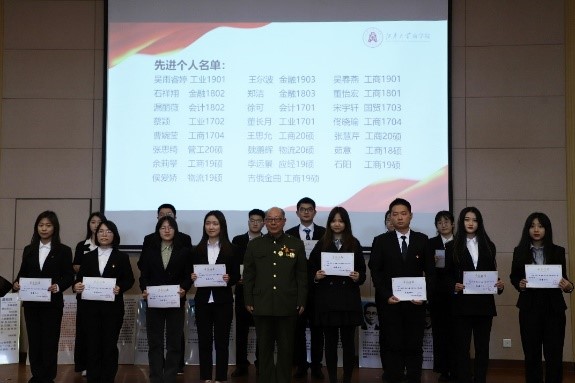 讲座结束后,姚老先生亲自为学院在寒假开展的“寻根溯源知来路,永葆初心再出发”寻访慰问老党员活动中获得“先进个人”称号的23位学生颁奖。