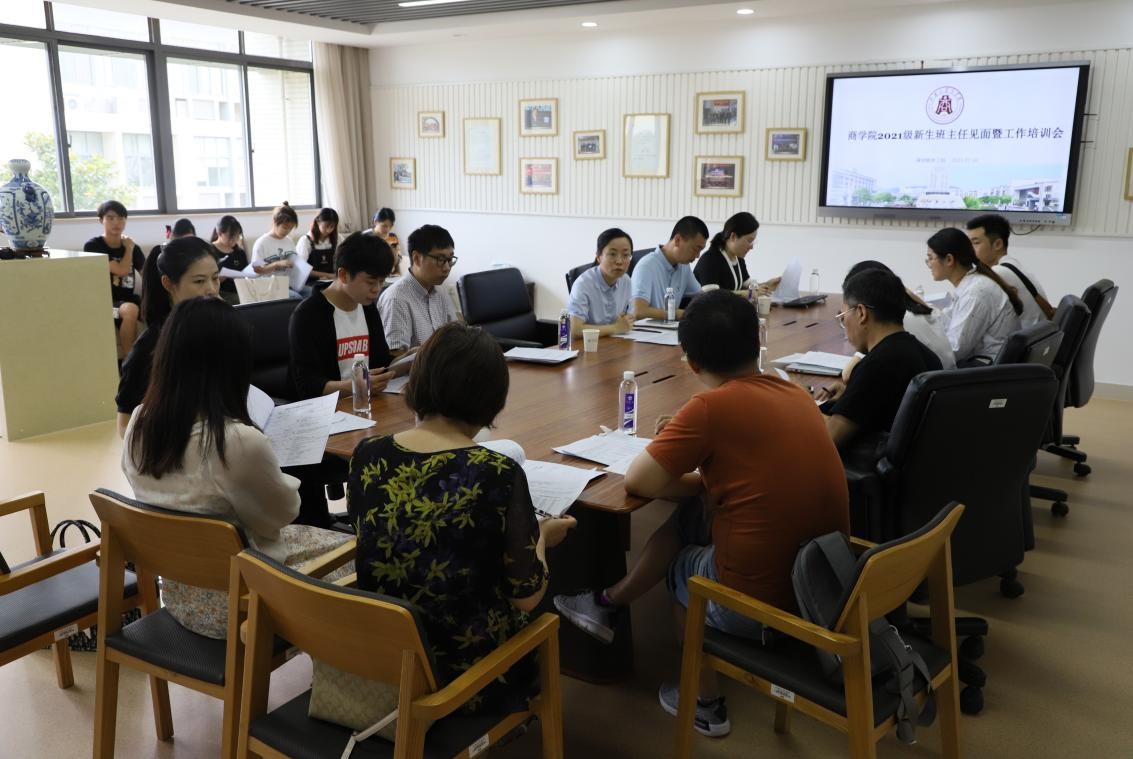 为加强学院班主任队伍建设,提升班主任业务能力水平,做好迎接新生预备动作,7月16日上午,新葡萄8883国际官网2021级新生班主任见面暨工作培训会在学院308会议室举行,院党委副书记、副院长徐静,2021级新生班主任,新生辅导员及学生副班参会,活动由辅导员王璁主持。