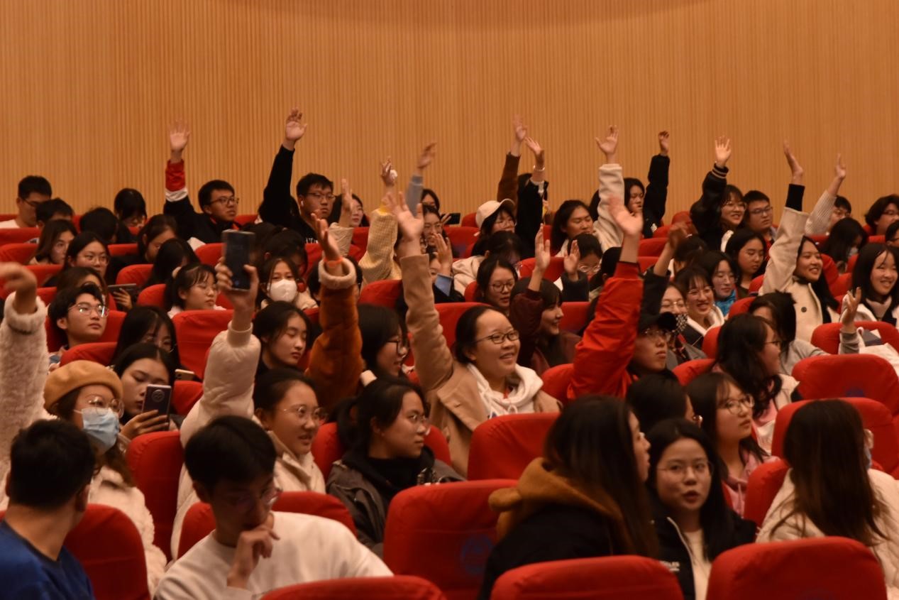 随后,十支参赛团队进行了第二轮现场配音比拼。决赛的经典配音片段形式丰富且多样,俏皮灵动的《无敌破坏王》,运筹帷幄、刺激紧张的《纸牌屋》、壮志成城、感人肺腑的《疫情实录》等等,都深深吸引到了现场观众。选手们饱含情绪,绘声绘色,对人物的模仿惟妙惟肖,与原声难分高下,一再将气氛推至高潮。观众被带入影片本身,体会剧情起伏,不断与人物共情,做到了真正的“声”临其境。互动环节更是学生广阔知识面的展现,或争先猜剧名,或回忆经典台词,欢乐之中,展现英语口语能力。英文声声入耳,此次英语配音大赛成功打造出一个多样化的英语学习平台,绽放学生光彩。