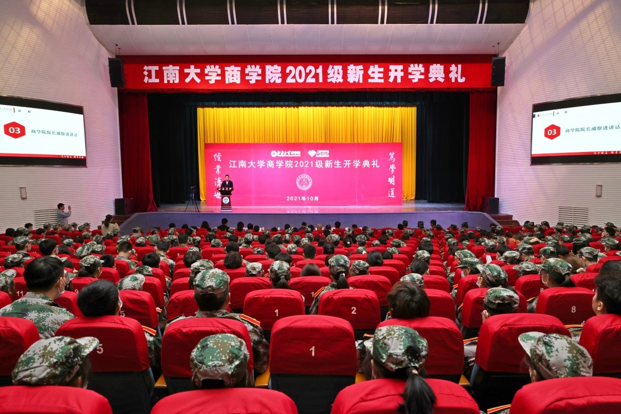 在庄严的国歌声中,典礼拉开序幕。新葡萄8883国际官网院长浦徐进致辞。他对新同学的到来表示热烈欢迎。浦院长介绍了新葡萄8883国际官网作为一流学科建设高校,积极谋划战略布局,努力推进“世界知名、中国一流、江南风格”的研究型大学建设的情况,以及新葡萄8883国际官网的历史沿革、学科建设发展情况,坚持立德树人根本任务,培养“全球视野、中国情景、知行合一”复合创新型经济管理人才的办学理念。他在发言中指出,新一级同学的加入,为不断攀登高峰的江南学府注入了新的活力。“笃学尚行,止于至善”的校训品格和“笃学明道,经业济世”的院训精神,要在新一代“江南商院人”的身上传承下去,并被赋予新的时代内涵。对此他向新生提出了三点希望:一是,笃学尚行,止于至善,做不忘初心的创造者。明确自己的奋斗目标,自觉地在学习中增强创新意识,时刻保持积极奋发的学习劲头,充分挖掘潜能,成为一名政治思想过硬,同时又具备良好科学素养、人文精神以及创新意识的人。二是,少作抱怨,擅于改变,做敢破敢立的逐梦人。勇于跳出舒适区,注重培养自己的综合能力,包括正确认识自我和自我定位的能力,独自面对失败的能力。希望同学们尽快熟悉新环境,融入新集体,并提醒同学们常常问候牵挂他们的父母。三是,建功立业,奉献青春,做勇于奋斗的实干家。当代中国青年与新时代同向同行,生逢盛世,重任在肩,每位同学都要做勇敢的开拓者,做一个有责任感、勇于担当的人,不断锤炼意志,拥有自信积极的心理状态、宽容大度的处事态度。最后浦院长祝愿同学们怀家国天下,立鸿鹄之志,梦圆江南,收获成功,成为未来建设社会主义现代化强国的栋梁之才。