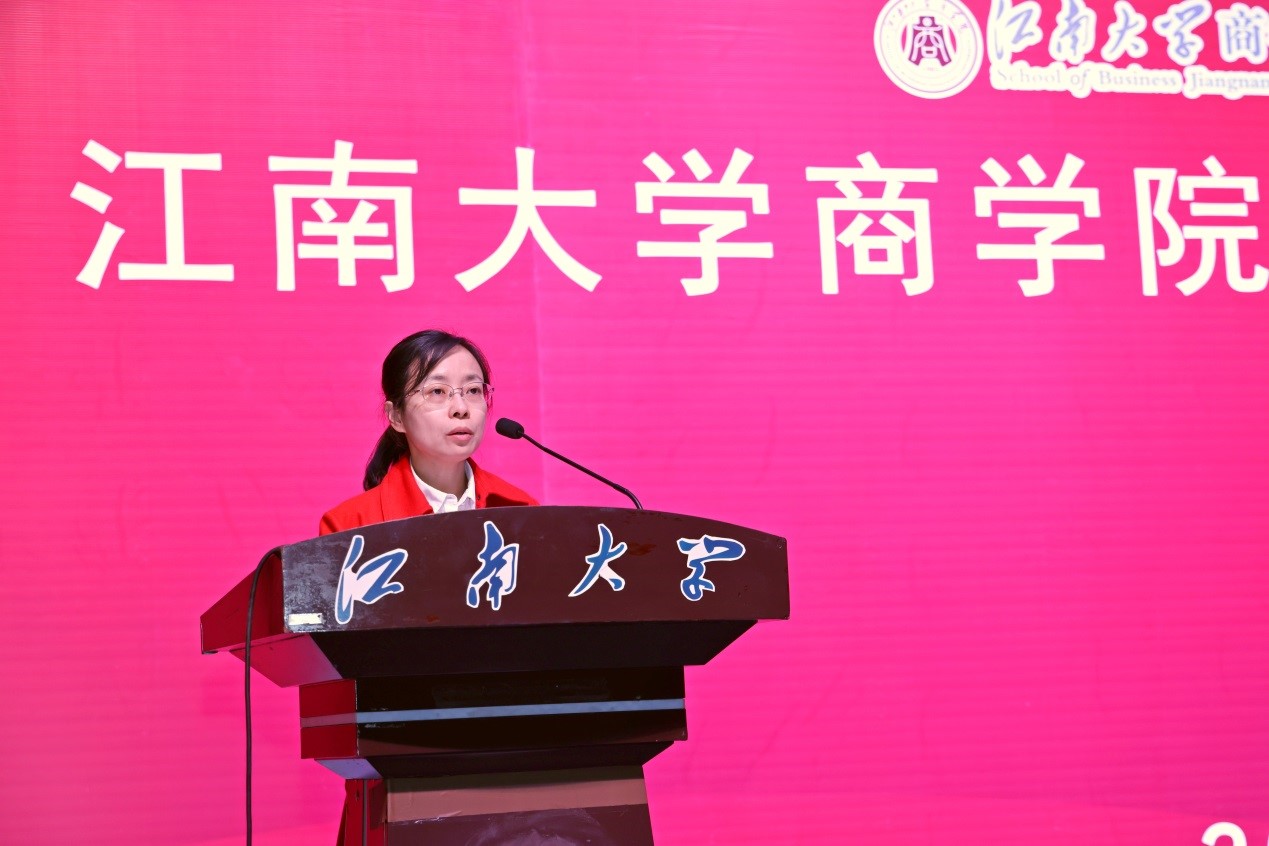 国际经济与贸易专业学生乔偌婷作为本科新生代表发言,展示了新“江南商院人”的青春风采。她勉励同学们,作为新生代学子,要有“天生我材必有用”的坚定信仰,要有“绝知此事要躬行”的务实精神和“且将梦想附新月”的拼搏精神。在大学时光里争做追光少年,使自己的大学生活有意思更有意义。