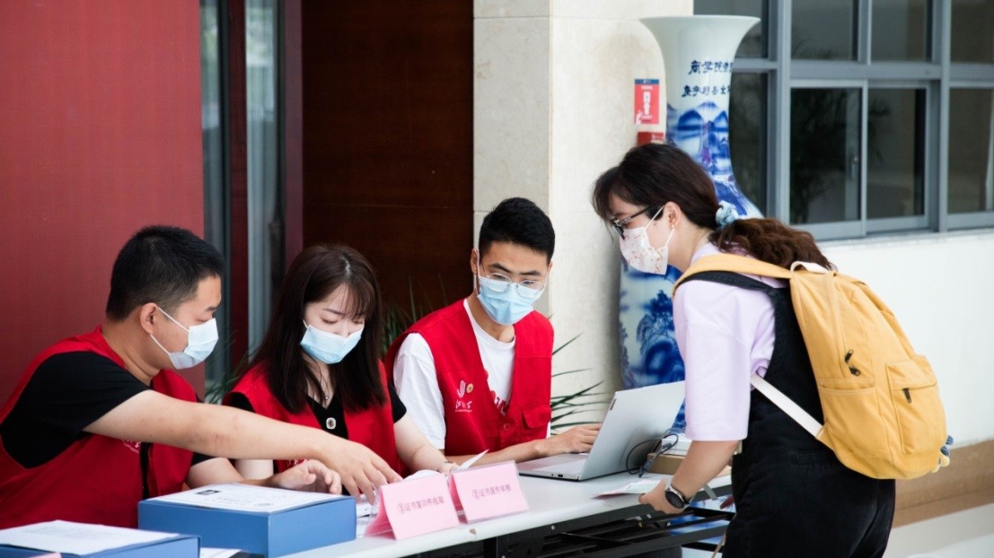 在报到现场,新生辅导员与同学们耐心交流,为新生答疑解惑。新生们在志愿者的引导下完成体温监测,报到登记注册等。在杏园、梅园学生公寓,志愿者协助新生搬运行李,将学生行李运送至寝室。