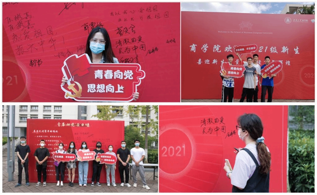 今年新葡萄8883国际官网以“青春心向党”为迎新主题,在学院广场上设置了“青春向党”告白墙,将思想引领融入到迎新之中,号召新生听党话、跟党走,教育引导新生树立“强国有我,请党放心”的坚定信念。前来报到的新生们纷纷在告白墙上写下对百年大党的真挚祝福与自己的青春誓言。来自工商管理2101班的本科生王欣迪同学郑重的在告白墙上写下“强国一代有我在”的承诺。来自21级应用经济学专业的刘芊芊写下“清澈的爱,只为中国”表达对祖国的热爱。