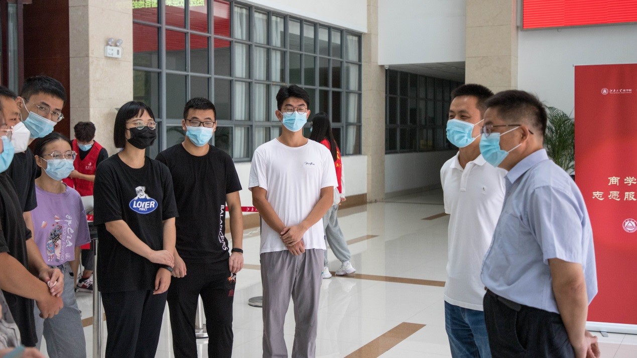 迎新当天,学院党委书记徐锡清、院长浦徐进来到学院大厅,检查指导迎新工作,看望慰问新同学。在迎新现场,徐书记详细了解新生们的报到入学情况,告诉大家要尽快转变角色,适应大学生活,找准目标精准发力。浦院长在迎新现场与研究生热情交流,勉励学生对待学术要严谨规范,敢于坐“冷板凳”沉下心去做学问,欢迎同学们多与他交流。