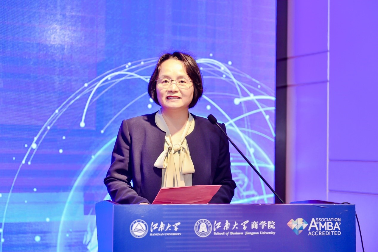 在随后隆重的MBA校外导师授聘仪式上,浦徐进院长为59名企业高管颁发了校外导师聘书。无锡威孚力达催化净化器有限责任公司总经理褚霞代表新聘导师发言。她对新葡萄官网MBA项目注重产教融合,积极开辟创新发展新赛道给予了充分肯定,表示校外导师们一定会珍惜荣誉,担负责任,拓展校企合作资源共享的广度和深度,通过多种灵活有效的方式贡献力量,为新葡萄官网培养更多优秀工商管理人才助力。