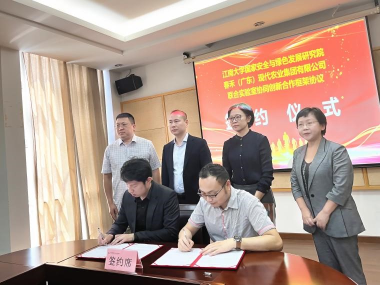 会上,新葡萄8883国际官网国家安全与绿色发展研究院与春禾(广东)现代农业集团有限公司签署联合实验室协同创新合作框架协议,与翊持先进冷链科技(无锡)有限公司签署冷链技术协同创新合作框架协议。会后,与会人员一行还实地参观调研了新葡萄8883国际官网未来食品科学中心,周景文副院长与汪超副院长陪同调研。