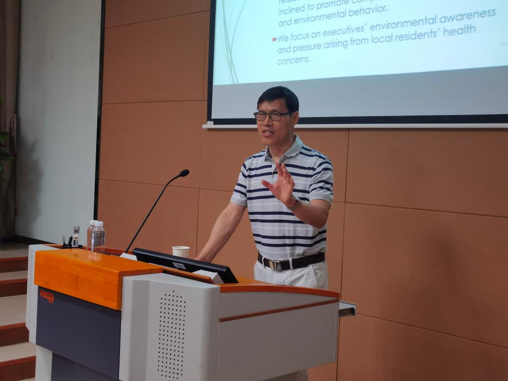 安云碧教授首先结合现实背景提出了研究的三个主要问题,一是对空气污染和绿色创新之间关系的探索;二是对关系背后原因的探索;三是对哪些因素影响这样的关系的探索,具体包括公司高管、监管压力、政府补贴等因素。具体的研究结果发现:PM2.5浓度与绿色创新之间的关系是显著的,研究采用一个地区产生逆温天数作为工具变量进行两阶段回归,剔除了最有可能申请空气污染治理绿色专利的行业,同时采用董事开会前七天PM2.5浓度值作为替代变量重新进行回归,均得到了稳健的结果。随后研究采用了企业社会责任报告的关键词来判断公司的环境意识,使用当发生污染后地区居民对健康关键词的搜索量作为替代,证实了健康担忧机制的存在。