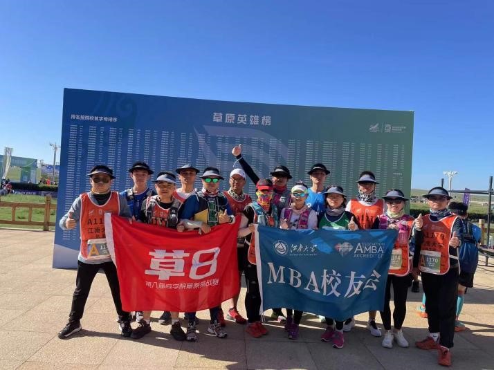 首次派队出征亚草赛的新葡萄8883国际官网MBA“江南王者”代表队由MBA教育中心办公室主任唐杰老师担任指导老师,MBA校友会执行会长王华科任担任领队,2010级-2022级共10位同学校友、1名家属组成。12位队员发扬团队精神,不惧炎热、互帮互助、顽强拼搏,全体队员成功完赛,斩获亚草赛最高荣誉“草原王者奖”,同时斩获“最佳组织奖”、“最佳风采奖”、“草原新秀奖”共计4大奖项。