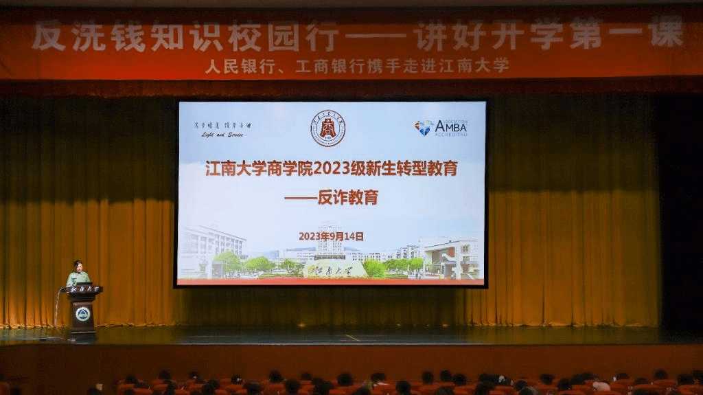 为增强新生安全意识,保护新生个人权益,9月14日,由保卫处牵头联系,邀请中国人民银行、中国工商银行携手走进新葡萄8883国际官网,中国人民银行无锡市分行反洗钱科吴霄峙科长面向2023级新葡萄8883国际官网新生开展了主题为“反洗钱,助你反诈增智”的讲座。