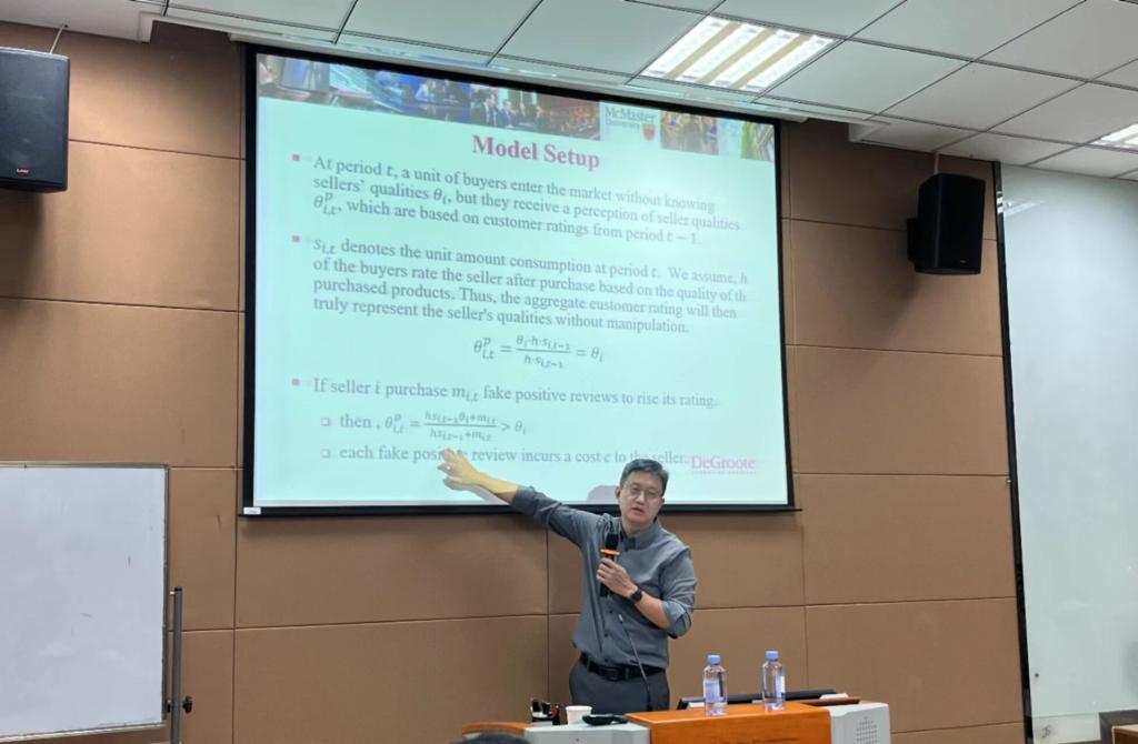 10月18日下午,“商学大讲堂”系列学术讲座第221讲在新葡萄8883国际官网118利安达厅举行。加拿大麦克马斯特大学德格罗特新葡萄8883国际官网市场营销系吴如海教授应邀作题为“When Karma Strikes Back: A Model of Seller Manipulation of Consumer Reviews in An Online Marketplace(因果报应:线上平台中卖家操纵消费者评论的模型)”的学术讲座。本次讲座由新葡萄8883国际官网管理科学与工程系张建强教授主持,新葡萄8883国际官网教师与各专业研究生80余人参加了本次讲座。