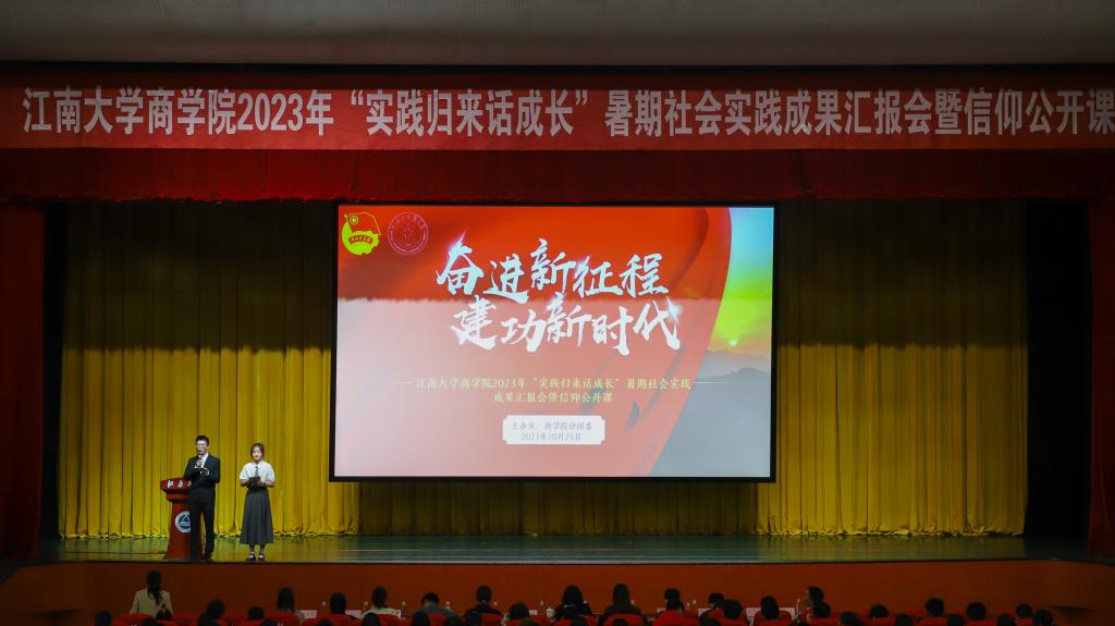 本次活动特别邀请2023年暑期社会实践优秀团队代表来到现场,师生一同“实践归来话成长”,讲述亲身实践故事,分享青春成长收获——“贡亭云雾”实践团遵循“以茶为引,促进茶旅新融合”建设方针,赴贵州省贵定县开展调研,致力贵州茶产业发展,助力山区乡村振兴,探索切实可行的新型发展之路;“‘源’起百香”实践团以产业振兴为主题,以兴销百香果为目标,深入贵州省从江县探究百香果产销新模式,为建设美丽中国贡献青春力量;曲水流“商”实践团走进无锡宝通科技有限公司,感受企业对产品质量的不懈追求,挖掘企业痛点,分析机制不足,改善评价流程,助力企业管理提质增效;“孙冶方”特称团支部名企实践团深入无锡费森尤斯卡比华瑞制药有限公司开展专题调研,体悟管理之道,感受企业魅力,助力国内制药企业质量管理系统优化改善。正如“‘源’起百香”实践团分享成员王姗姗所说,“我与‘志青春’相识相伴三年,从台下懵懂的看客、到台上展示的报幕人、再到青春故事的讲述人,我以实践致青春!这,是社会实践带给我的成长收获,也是我想传递给后来人的星星之火。”