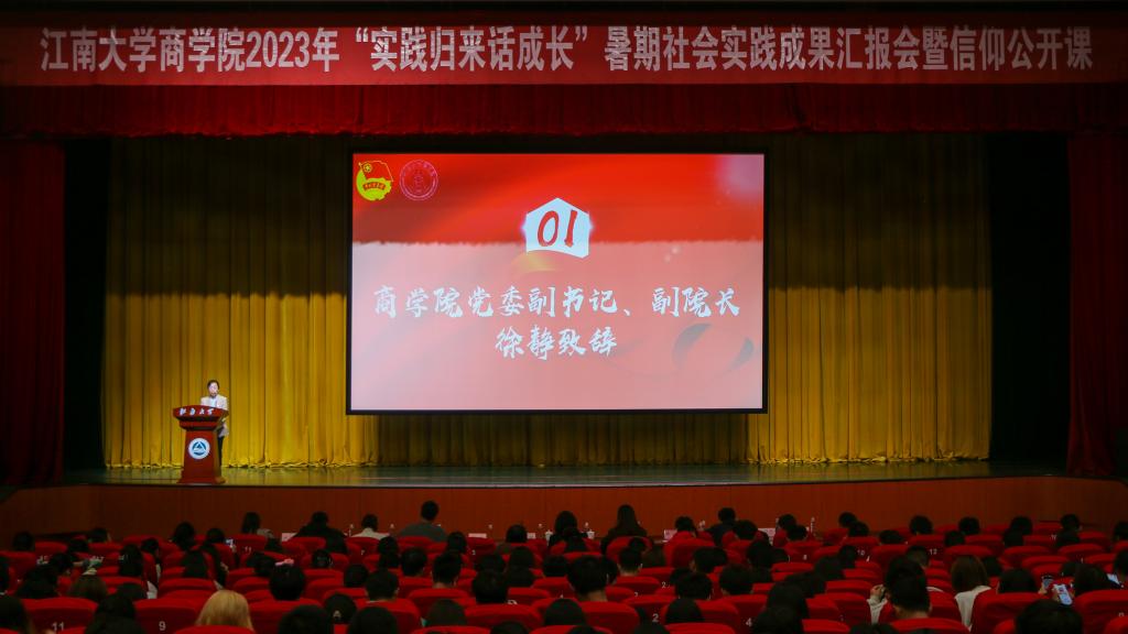 为展示社会实践优秀成果,做好朋辈交流辐射引领,鼓励知行合一开拓奋进,“奋进新征程,建功新时代”新葡萄8883国际官网2023年暑期社会实践成果汇报暨信仰公开课于10月25日晚在文浩馆观众厅成功举办,院党委副书记兼副院长徐静、优秀实践指导老师谢玉梅、分团委书记王璁及全体辅导员出席,2023级全体新生及2022级班团骨干参与活动。