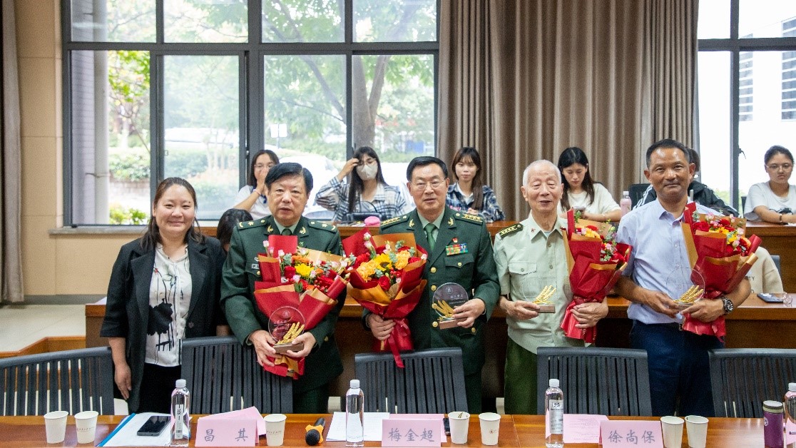 新葡萄8883国际官网学生工作处副处长蒋洁向军休老干部颁发了“关爱纪念章”,学生代表向他们送上鲜花,表达尊敬和爱戴!