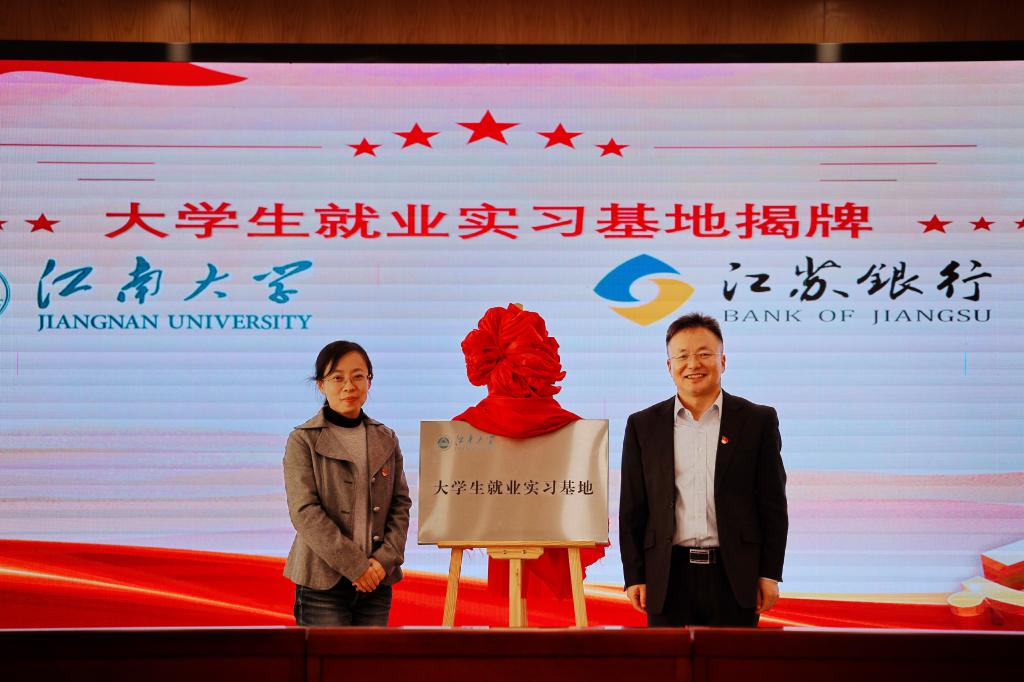 校企双方领导徐长平、徐静共同为“新葡萄8883国际官网——江苏银行无锡分行大学生就业实习基地”揭牌。未来,双方将在人才共育方面协同共进,多形式实现学生能力与银行用人服务需求的匹配,为学生提供更多实习就业的机会。