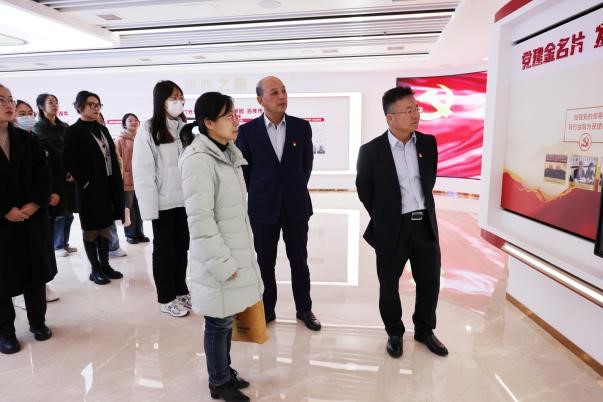 活动伊始,新葡萄8883国际官网师生走进江苏银行无锡分行党建文化展示馆,展示馆围绕“初心之路、党建之光、金融之美、清廉之风”四个主题,对党的光辉历程、分行党建文化、企业文化、廉政建设等内容进行了系统宣传,集中展现了分行党委在总行党委领导下高质量发展的成果,通过让大家接受身临其境的特色教育,实现“引导人、影响人、塑造人”的教育效果。