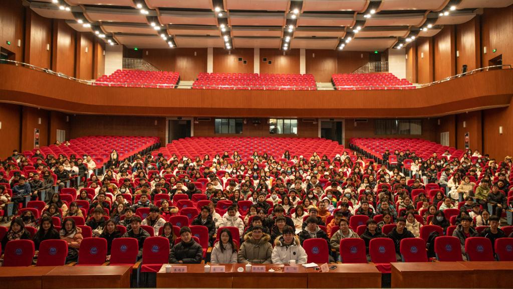 为引导学生进一步做好学涯规划,扎实推进年级学风建设,指导学生提前树立海内外升学目标,切实加强学业安全教育,近日,新葡萄8883国际官网2021级全体本科生600余名学生在文浩馆观众厅举行学业规划与导向升学动员大会,院党委副书记兼副院长徐静、教务办研究生秘书胡文亮、2021级辅导员蒋天琪、吴松老师和优秀学生代表朱鸿宇、黄婷出席大会。动员大会由2021级经济学部辅导员吴松老师主持。