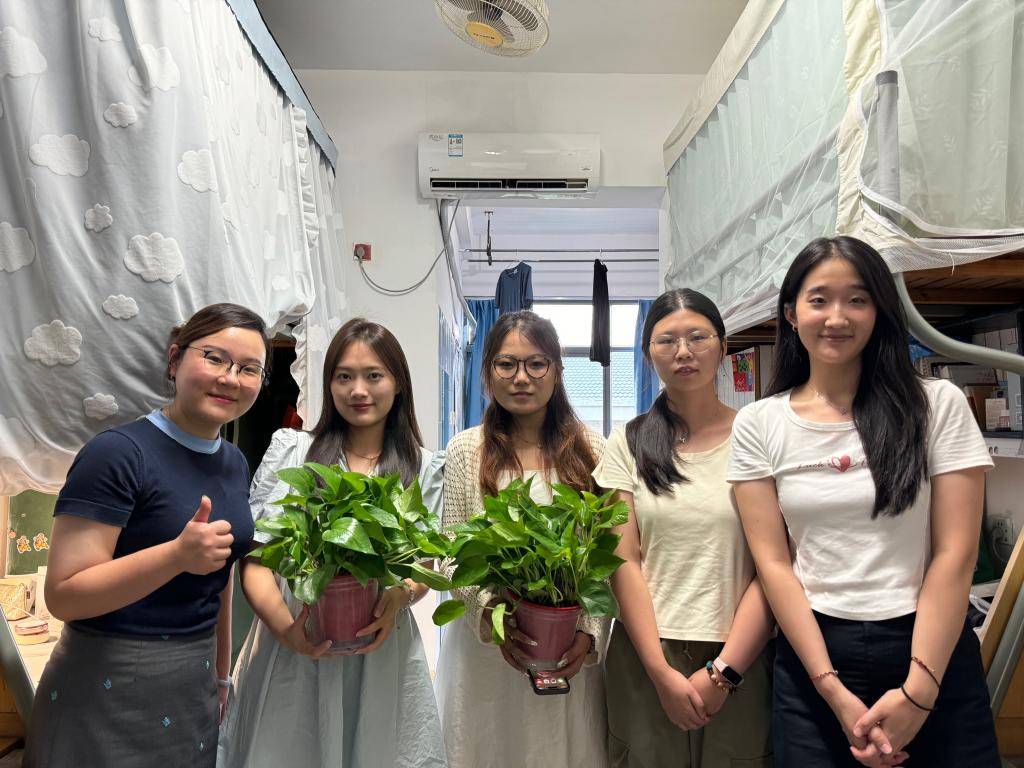 宿舍走访是帮助新生融入江南校园生活的第一步。为此,新葡萄8883国际官网特意准备绿植盆栽作为新生们的“乔迁之礼”,寓意新生们在这里茁壮成长。王璁老师在走访寝室时将绿植递到新生手中,祝愿这份绿意伴随新生们度过每一个美好的日子,共同见证彼此的成长和蜕变。