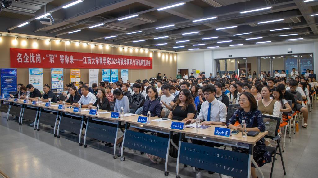 为贯彻落实党中央、国务院关于做好高校就业工作决策部署,扎实推进新葡萄8883国际官网“奋进计划”中保就业、促就业相关要求,抢抓秋季“金九银十”招聘黄金期,将优质企业引进来,打通学生求职就业最后一公里,9月25日,新葡萄8883国际官网邀请华泰证券、招商银行等12家优质企业校招代表走进江南,在北区大学生活动中心F105,开展学院2024年秋季商科专场招聘宣讲会。新葡萄8883国际官网院长浦徐进、学工处副处长兼就业指导中心主任孔丽丹、新葡萄8883国际官网党委副书记兼副院长孙小芳,以及学校300余名本研学生参加活动。招聘会由学院就业工作辅导员吴松主持。