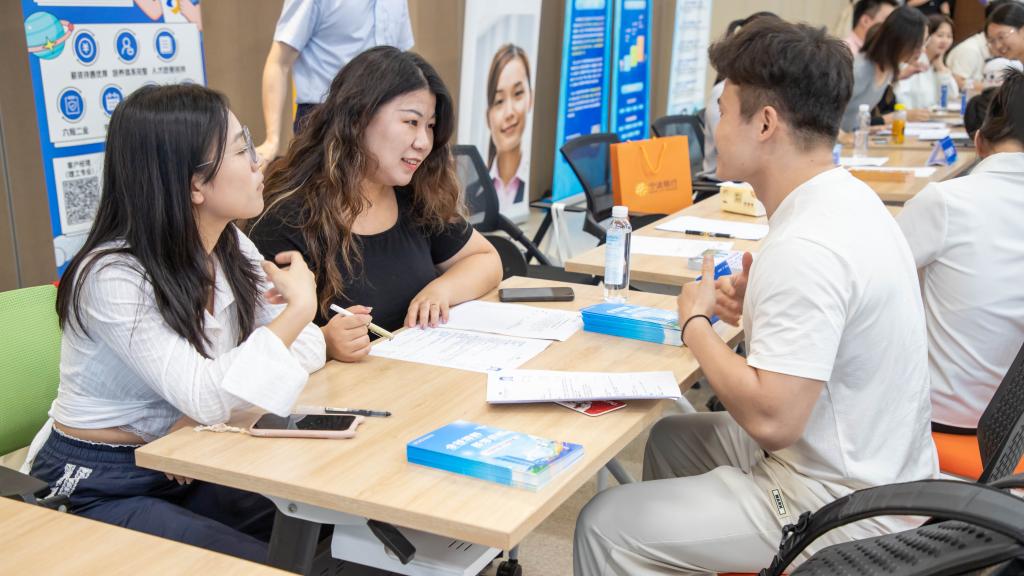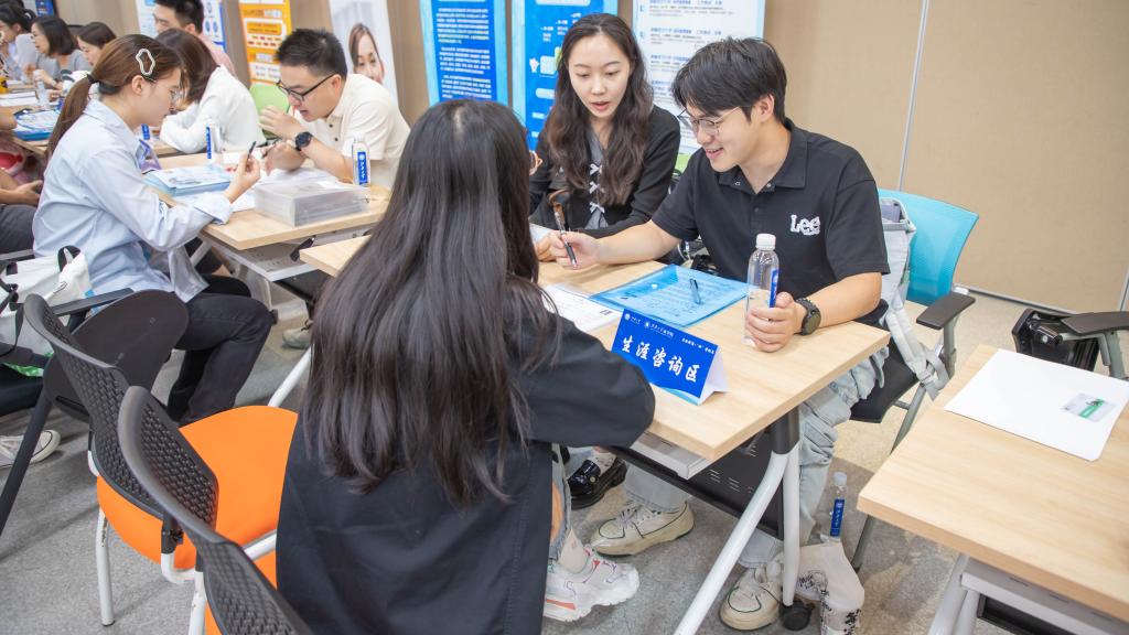 求职学生与用人单位交流