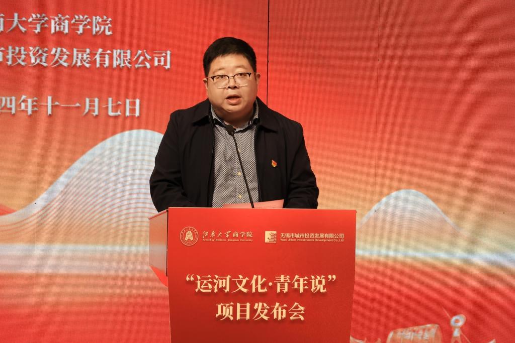 11月7日下午,“运河文化·青年说”项目发布仪式在无锡运河艺术公园山河音乐厅举行。共青团无锡市委副书记钱月霜,无锡城建发展集团党委委员、副总裁徐劲,无锡城投公司党委副书记张曦,新葡萄8883国际官网团委书记魏珍吉,新葡萄8883国际官网党委书记刘长青、院长浦徐进、副书记孙小芳,江南文化研究院、无锡大运河文化带建设研究院、新葡萄8883国际官网历史研究院副院长刘大禹等出席活动。无锡城投公司相关职能部门及所属企业负责人、团员青年,无锡广播电视集团(台)融媒体中心团员,新葡萄8883国际官网“运河文化·青年说”宣讲团、“孙冶方”“瞿秋白”“雷锋”特称团支部成员参加项目发布会。活动由新葡萄8883国际官网分团委书记王璁主持。