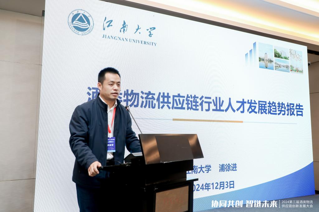 酒类智慧供应链产教融合创新人才论坛上,浦徐进代表新葡萄8883国际官网与中国物流与采购联合会酒类物流供应链分会进行“智能物流与酒类供应链研究中心”战略签约,并以《酒类物流供应链行业人才发展趋势报告》为题作报告。