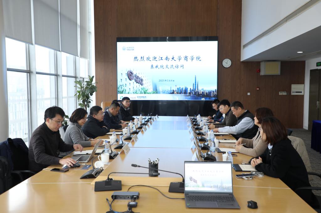 3月4日,新葡萄8883国际官网党委书记刘长青、院长浦徐进、办公室主任徐昉等一行6人赴同济大学经济与管理学院,就建院40周年活动筹备、学院改革发展等方面进行深入调研与交流。同济大学经济与管理学院党委书记施骞、院长谢恩、党委副书记兼纪委书记阮青松、党委副书记董变林,及院长协理兼校友与公司关系办公室主任程国萍、院办主任赵海燕、学工办主任吴凯凡等参加座谈。