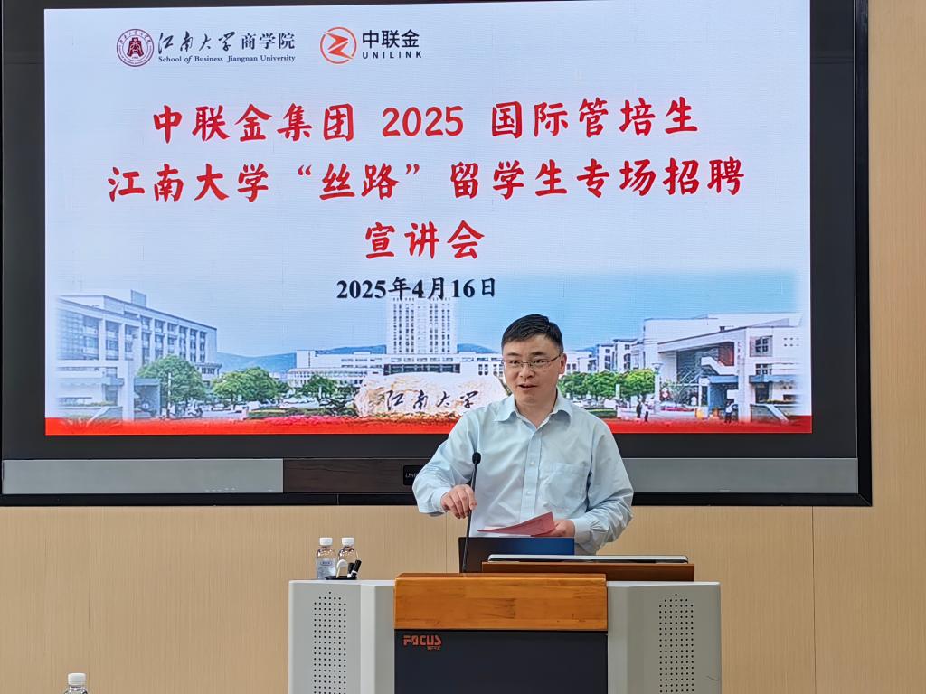 4月16日下午,中联金集团2025国际管培生新葡萄8883国际官网“丝路”留学生专场招聘宣讲会,在新葡萄8883国际官网举行。此次活动旨在为新葡萄8883国际官网“丝绸之路”工商管理(MBA)(以下简称“丝路”)留学生提供国际化发展的优质平台。中联金集团董事长郁晓春、总经理于洋,新葡萄8883国际官网副院长王雷出席活动。宣讲会由新葡萄8883国际官网MBA/MEM教育中心办公室主任唐杰主持。作为首场面向“丝路”留学生召开的专场招聘宣讲会,吸引了本项目留学生以及食品学院、生物工程学院、设计学院等国际学生共计30余人参加活动。