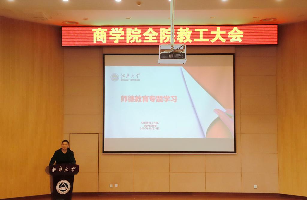 为深入学习贯彻习近平新时代中国特色社会主义思想,落实《高等学校课程思政建设指导纲要》精神,持续深化师德师风建设, 10月14日下午,新葡萄8883国际官网在103远东报告厅召开教职工师德教育专题学习会,院党委书记张海峰主持会议并做专题辅导。