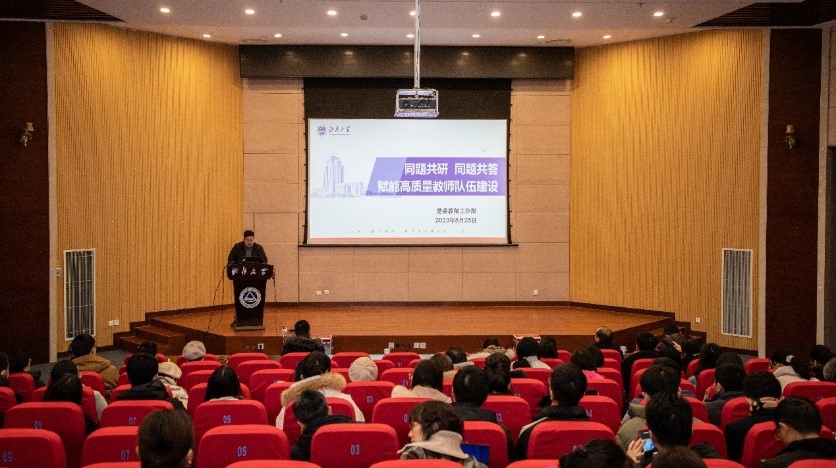 会议伊始,刘长青领学《同题共研、同题共答,赋能高质量教师队伍建设》主题报告,他指出要坚持把立德树人作为高等教育工作的根本任务,把思想政治工作贯穿到教育教学全过程。报告中以案释德、以案释纪、以案释法,从守纪律、讲规矩、强作风、树形象等方面展开阐述,以实例警醒全院教师严守道德底线。他强调师德师风建设的重点要从构建组织协作机制、强化思想政治建设、加强师德师风建设、打造全方位培育框架等方面着手,力求共建高质量教师队伍。
