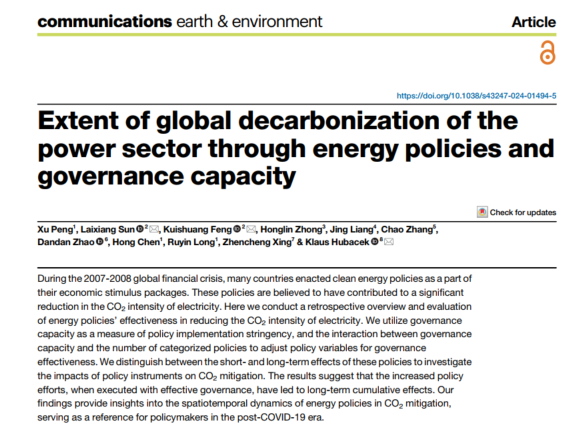 近日,新葡萄8883国际官网青年教师彭旭在全球碳减排中的气候治理能力及其政策效应研究方面取得重要突破进展,相关研究成果以“Extent of global decarbonization of the power sector through energy policies and governance capacit”为题于6月13日刊发于《自然》系列子刊《通讯-地球与环境》(Communications Earth & Environment)。《通讯-地球与环境》旨在发表地球科学、行星科学以及环境科学领域能够带来新的见解以及研究领域内重大进展的科学论文。目前该刊物学科大类和小类划分均为中科院1区Top期刊。目前该论文也是全国范围内以新葡萄8883国际官网或经管学院为第一单位在此刊物的首次发表,标志新葡萄8883国际官网在此领域内取得重要突破性进展。