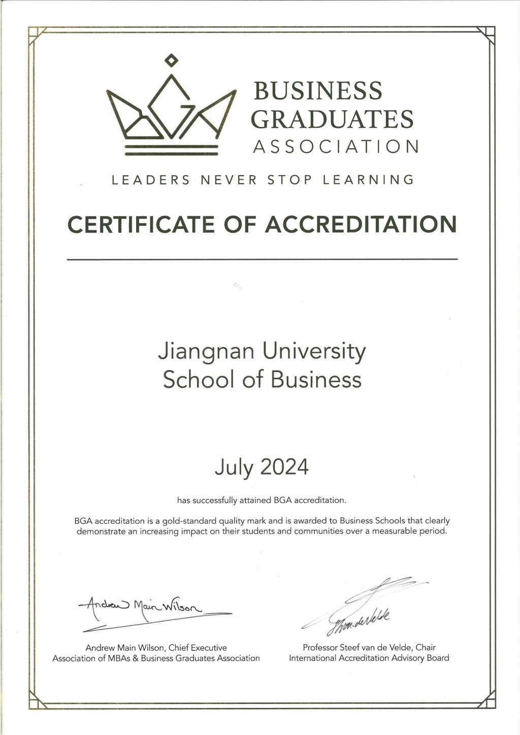 新葡萄8883国际官网在2024年10月顺利通过BGA(金牌)国际再认证,并获得五年最高认证期限。刘长青代表新葡萄8883国际官网参加授牌仪式。他在会议发言中详细介绍了学院目前发展情况,并着重阐述了学院近年来通过持续开发MBA项目案例、发布《江南企业案例蓝皮书》等形式传承发扬江南工商文化的具体举措。